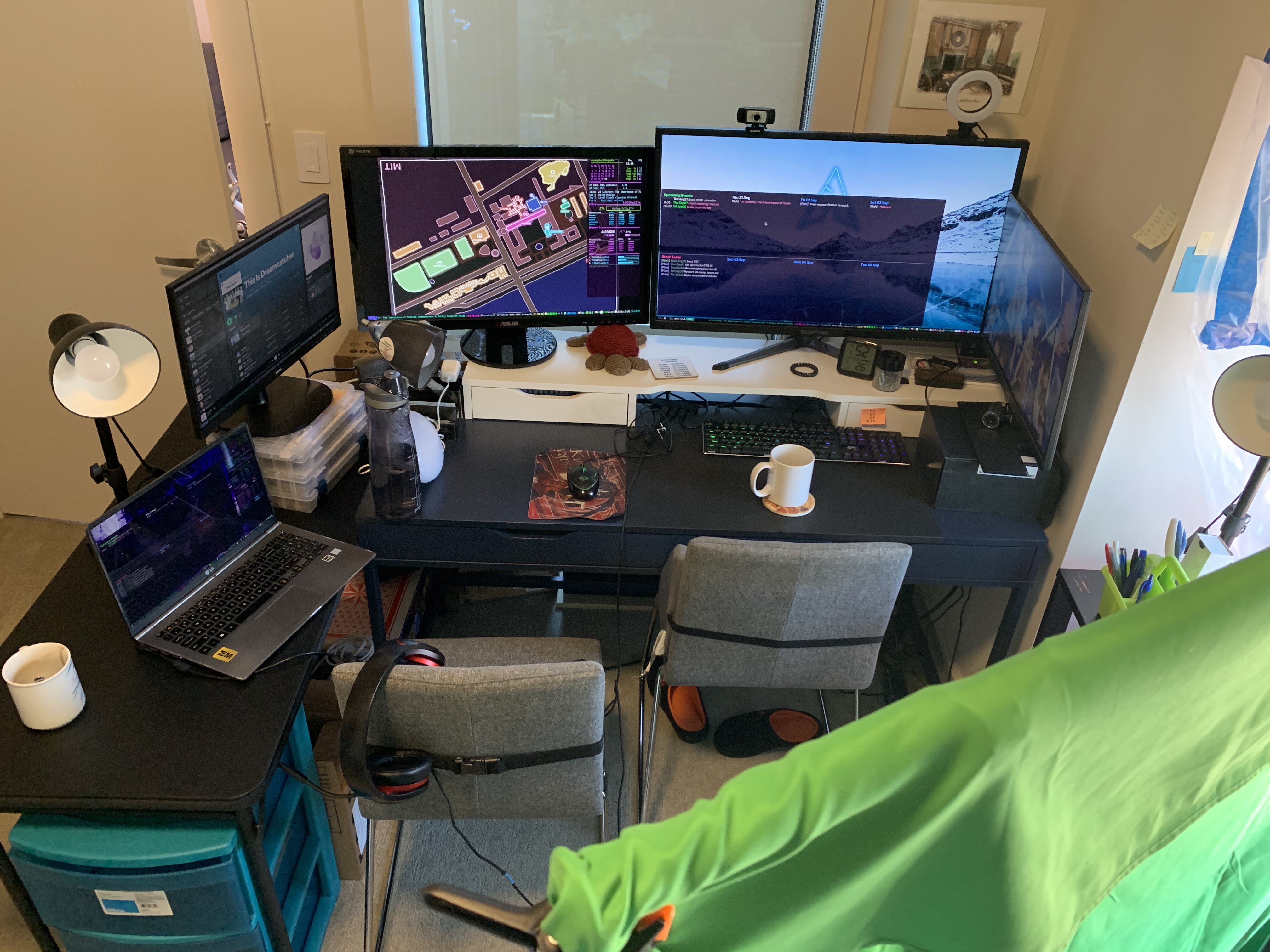 Here is a picture of my physical setup (click to enlarge). Xiberia V22 headset, Havit HV-KB395L keyboard, Inateck MS 1001 mouse, Wacom Intuos S tablet, MSI Codex XE Plus computer.